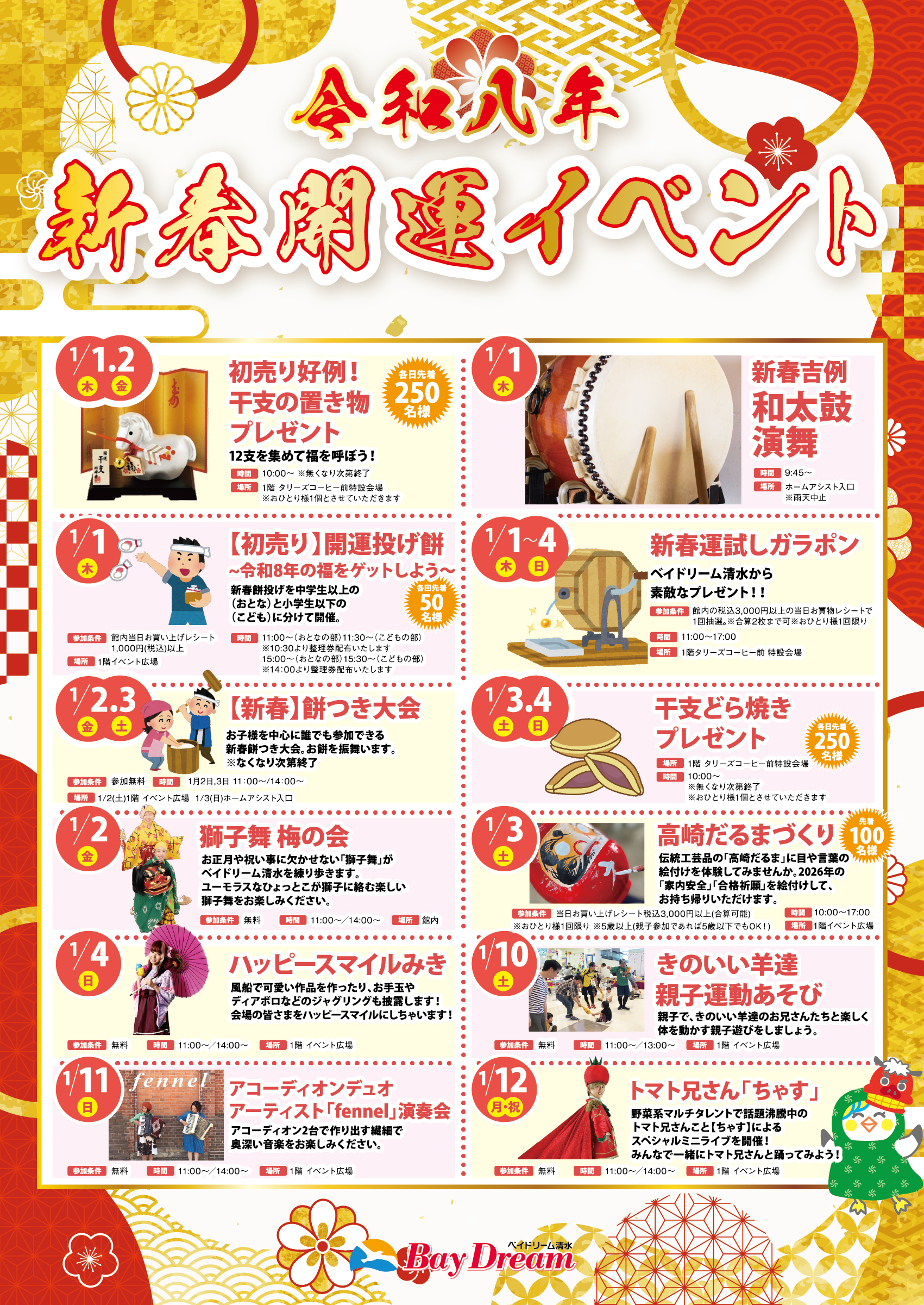 ベイドリーム清水のイベントカレンダー!今日のお得情報やイベント情報をチェック!