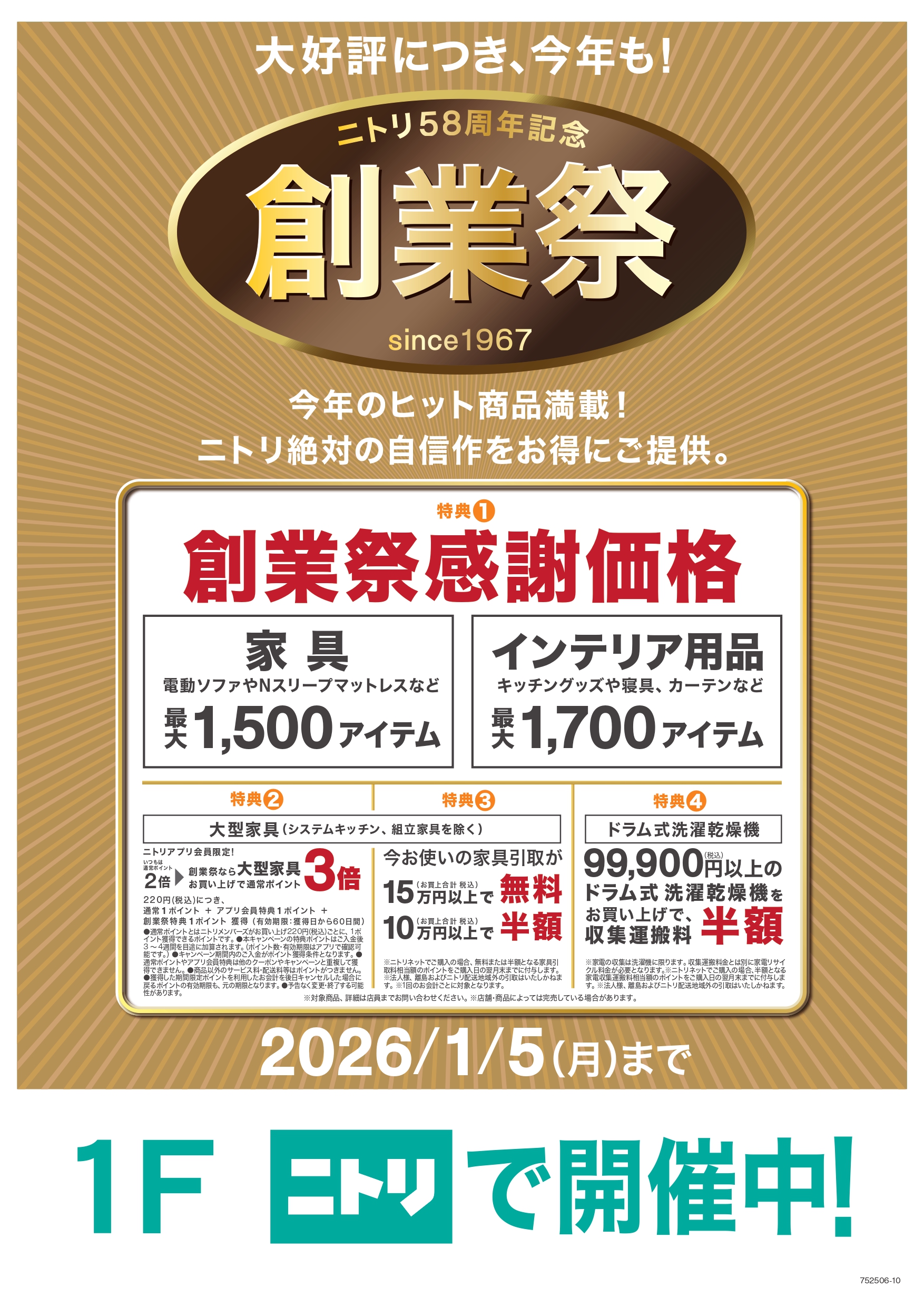 家具最大1500アイテム、インテリア用品最大1700アイテムを創業祭感謝価格にて販売!