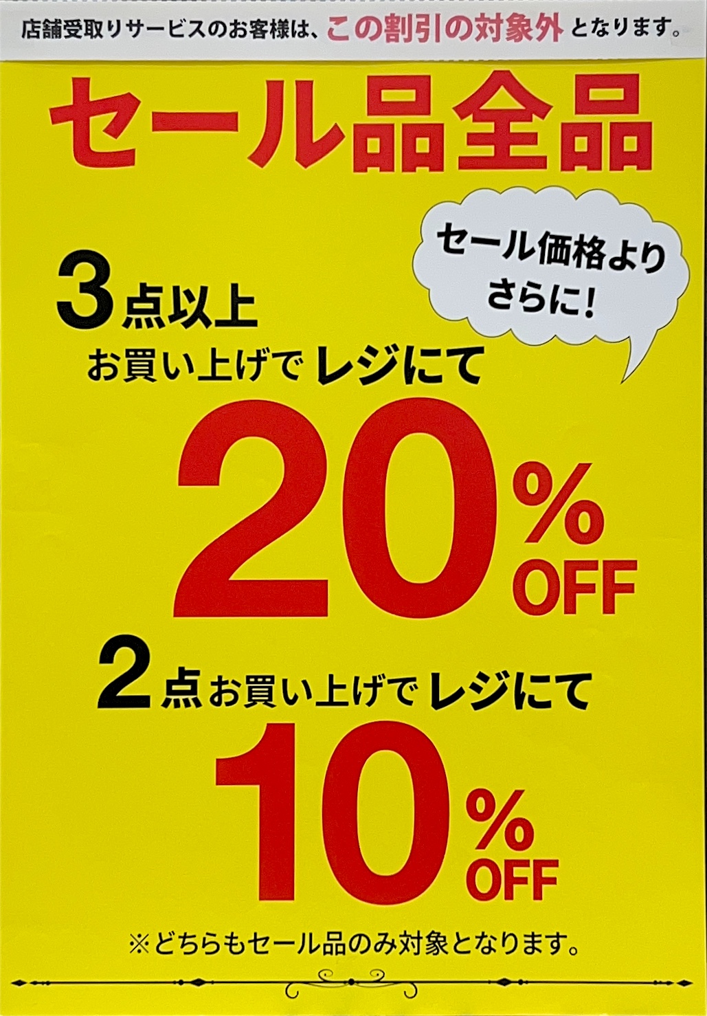 店内セール品のみ対象のお得なキャンペーン実施中♪