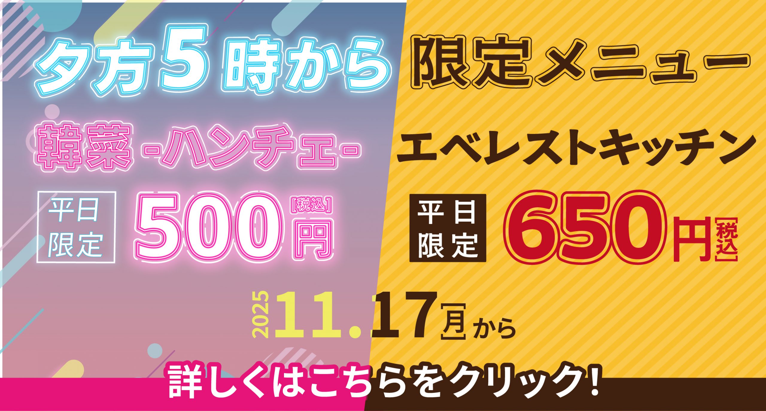 平日限定お得なメニュー!
