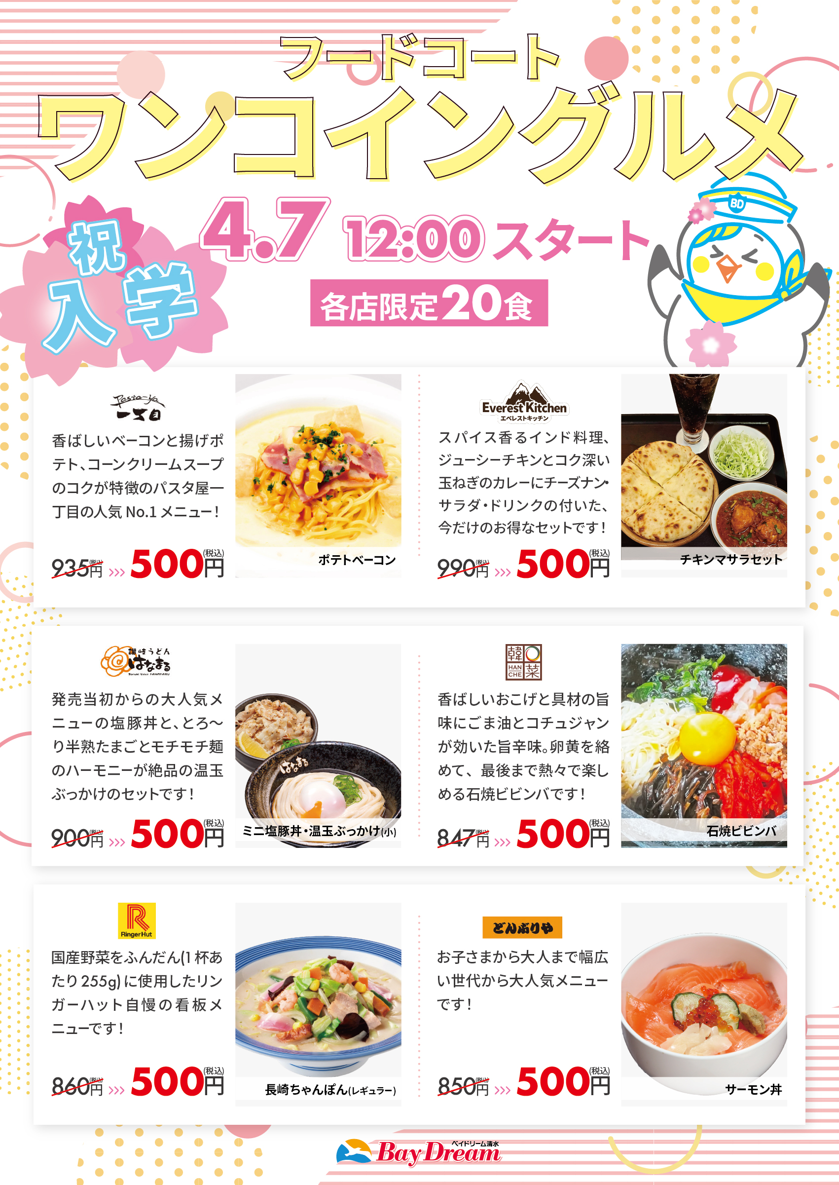 新入学を祝してフードコートワンコイングルメを開催します‼️
