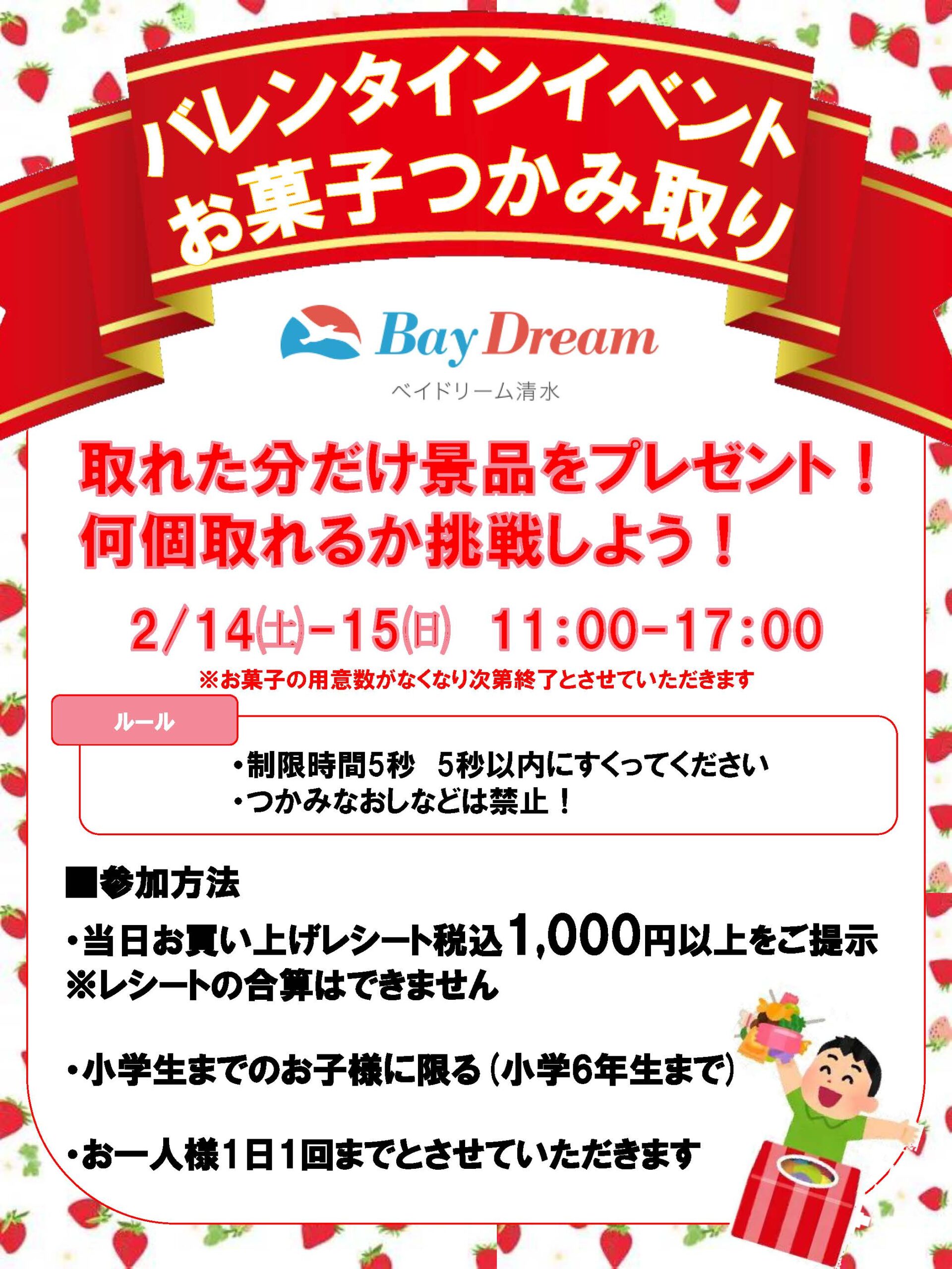 ベイドリーム清水にて税込1000円以上のお買い上げレシートをご提示で
